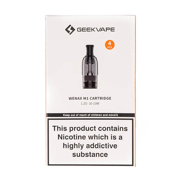 The Wenax M1 pods by Geek Vapes come in your choice of 0.8ohm or 1.2ohm resistance coils to support a restricted direct-to-lung or mouth-to-lung inhale.